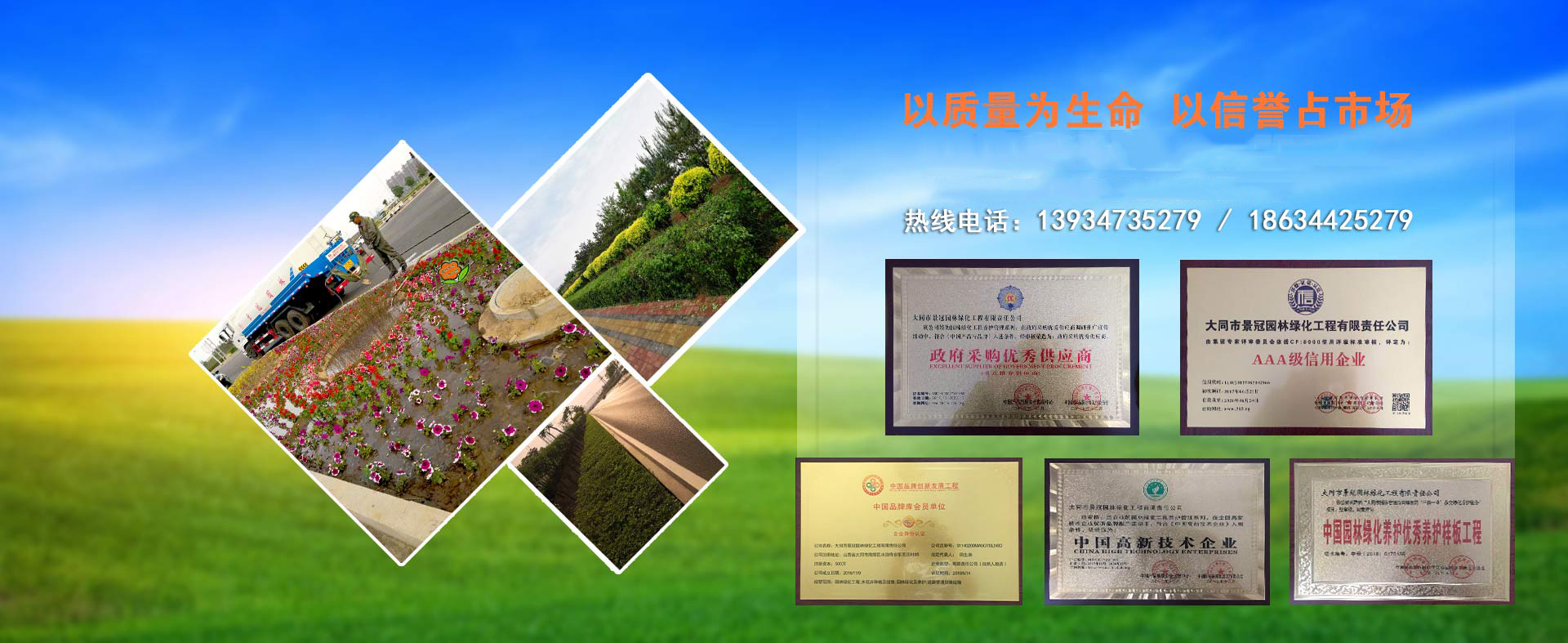 大同市景冠園林綠化工程有限責(zé)任公司是一家根植于設(shè)計(jì)、施工、植保養(yǎng)護(hù)、苗木花卉生產(chǎn)于一體的園林景觀企業(yè)。公司“以質(zhì)量為生命”、“以信譽(yù)求發(fā)展”這是公司一貫的經(jīng)營(yíng)宗旨。并以創(chuàng)新,誠(chéng)信,綠色,共享的發(fā)展理念,創(chuàng)造良好的企業(yè)環(huán)境。堅(jiān)持愛綠,護(hù)綠,保綠的方針為城市增添一份綠色,用綠色擔(dān)當(dāng)生態(tài)建設(shè)使命是我們共同追求的價(jià)值和企業(yè)目標(biāo)。以全新的管理模式,完善的技術(shù),周到的服務(wù),卓越的品質(zhì)為生存根本。幾年來我們致力于園林景觀植物領(lǐng)域的研究,在城市綜合體景觀,校園園林景觀,道路景觀,生態(tài)農(nóng)業(yè)景觀,美麗鄉(xiāng)村景觀,濕地景觀等多個(gè)領(lǐng)域參與規(guī)劃設(shè)計(jì)施工。不斷加大科技投入力度,加強(qiáng)人才的儲(chǔ)備,網(wǎng)絡(luò)技術(shù)的培訓(xùn),提升自主創(chuàng)新能力,不斷完善企業(yè)文化,用超前的技術(shù)制定出一套完整的園林植保技術(shù)管理方案。我們堅(jiān)持以擔(dān)當(dāng)為使命,用戶至上,服務(wù)至上,秉持初衷,不忘初心,實(shí)實(shí)在在,心無旁騖做好植保養(yǎng)護(hù)主業(yè),打造屬于自己的企業(yè)品牌,好好服務(wù)客戶,打動(dòng)客戶。
